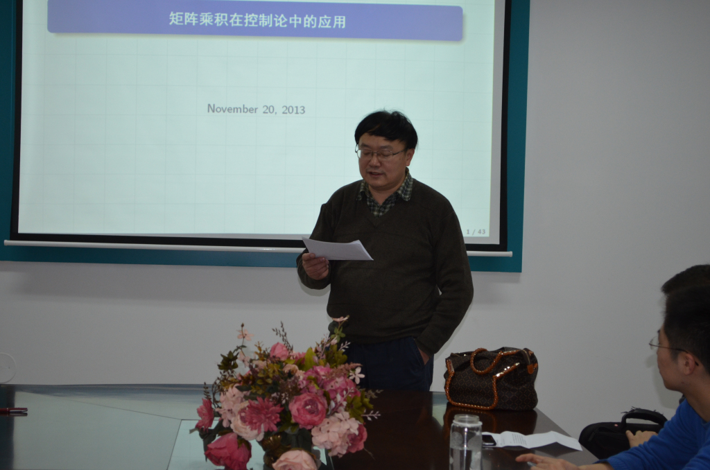2014年11月11日上午 8:30-9:30,山东大学bwin必赢冯俊娥教授在格物楼503做了题为《各种矩阵乘积在控制理论中的应用》的学术报告,报告由田波平教授主持,数学系十余位师生听取了报告并进行了热烈的讨论。
