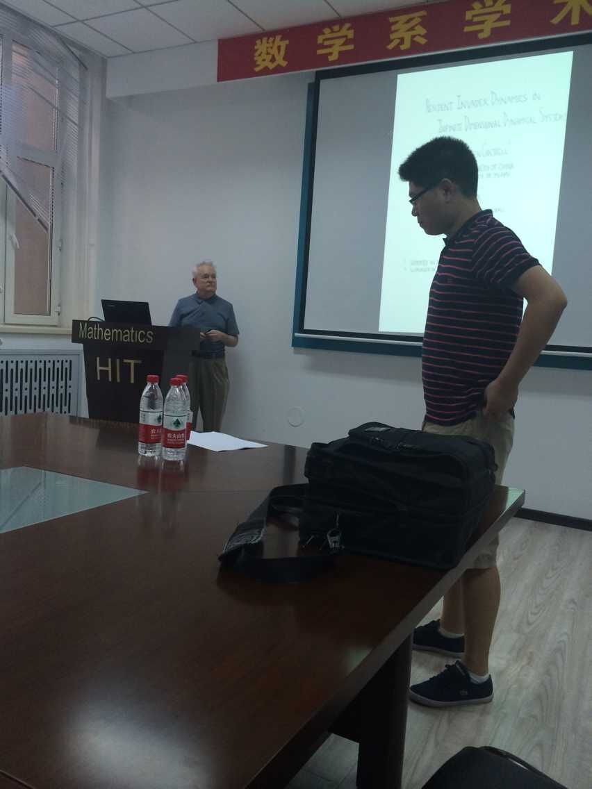 2015年8月3日上午9:00--10:00,迈阿密大学数学系系主任Stephen Canterll教授在数学系会议室(格物楼503)做了题为《Resident-Invader Dynamics in Infinite Dimensional Dynamical Systems》的学术报告,报告由方健教授主持,数学系十余位师生听取了报告并进行了讨论。