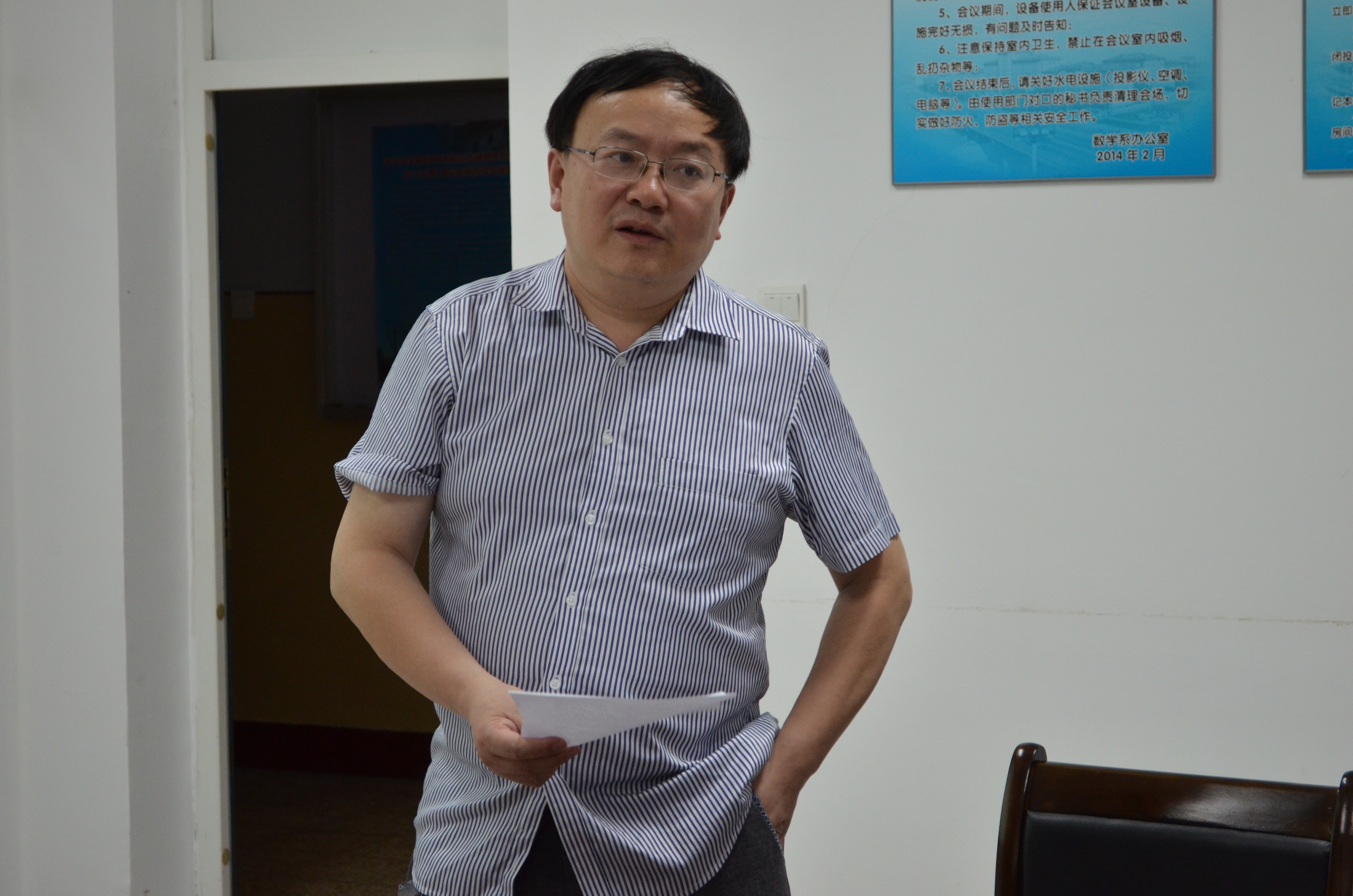 2016年7月12日下午15:00-16:30, 美国印第安纳大学南本德分校关忠教授在数学系会议室(格物楼503)做了题为《Accelerated Nonparametric Maximum Likelihood Density Deconvolution Using Bernstein Polynomial》的学术报告,报告由田波平教授主持,数学系十余位师生听取了报告,并进行了热烈的讨论。