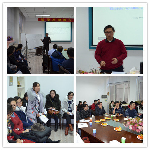 2017年1月11日(周三)10:30—11:30,bwin必赢田刚院士在格物楼503会议室做了题目为:Einstein equation and K-stability的报告,数学研究院许全华教授主持了报告,数学系师生50余人参会。田院士报告内容生动详实,深入浅出,尽显大家风采,报告结束后,还耐心细致的解答了数学系师生的疑难问题,整个报告内容博得了数学系师生的热烈好评。