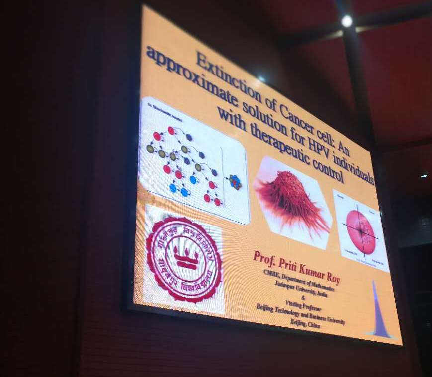 应数学系付永强教授的邀请印度Jadavpur大学数学系Priti Kumar Roy教授2017年6月2日至6月4日访问了我校,于6月4日10:00至11:00在活动中心301作了题目为Extinction of Cancer Cell: An Approximate Solution of HPV Individuals with Therapeutic Control的精彩报告。30余位师生听取了报告,并进行了热烈的讨论。