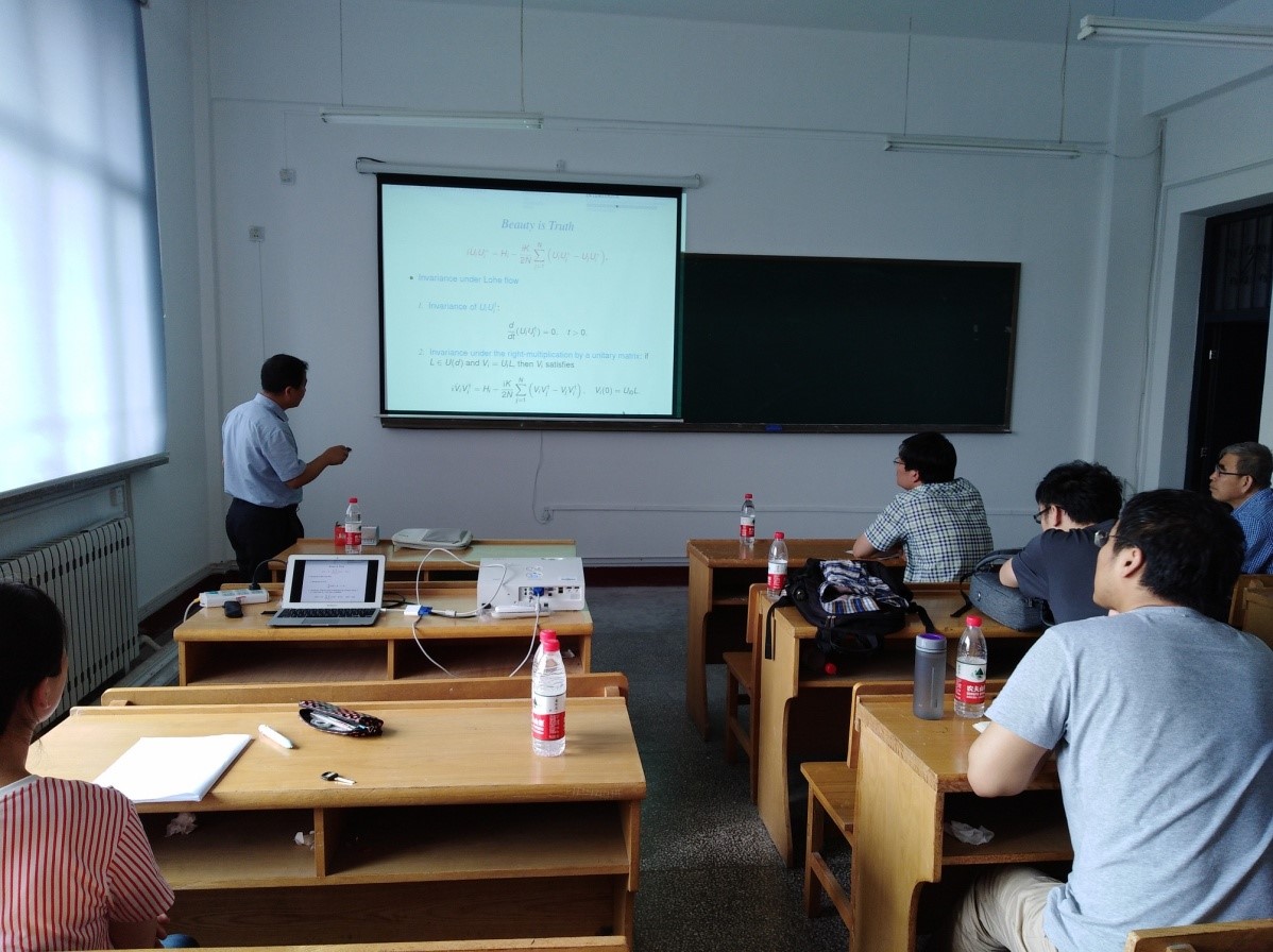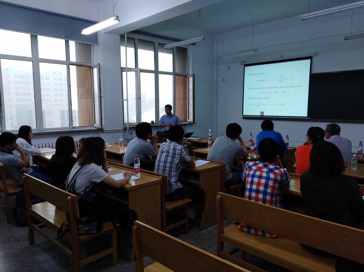 应bwin必赢数学系和数学研究院的邀请,首尔国立大学数学科学系Ha Seung-Yeal教授于2017年6月21日、22日在格物楼522报告厅做了题为“Unified approach for collective dynamics”及“Flocking modeling of thermodynamic Cucker-Smale particles”的系列报告,数学系相关专业的十余位师生参加学术报告并展开了讨论。