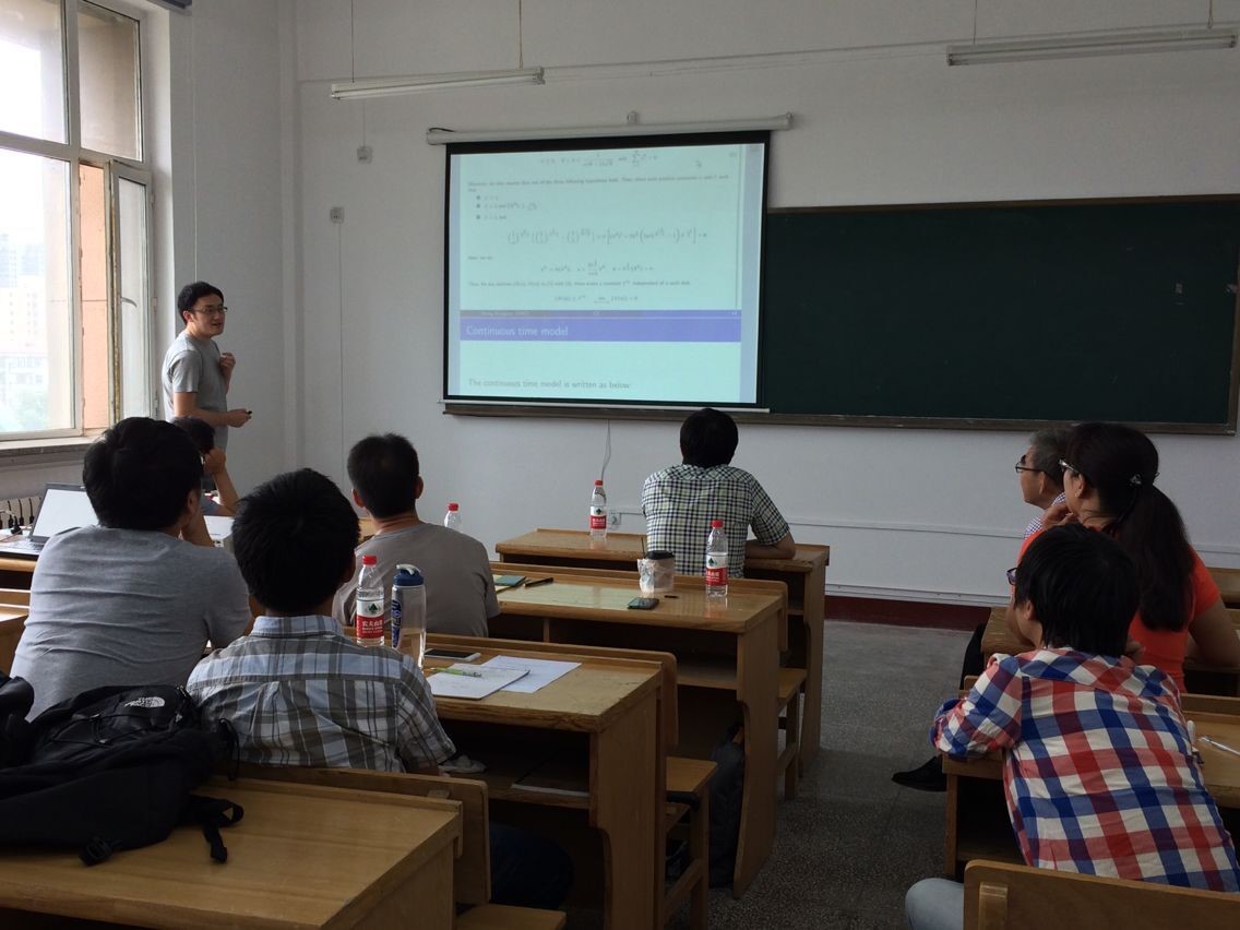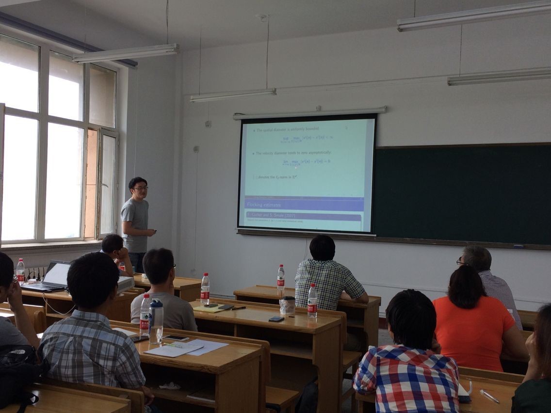 受bwin必赢数学系和数学研究院的邀请,首尔国立大学数学科学系张雄韬博士于2017年6月21日在格物楼522报告厅做了题为“Uniform-in-time transition from discrete dynamics to continuous dynamics in the Cucker-Smale flocking”的学术报告,数学系相关专业的十余位师生参加学术报告并展开了讨论。