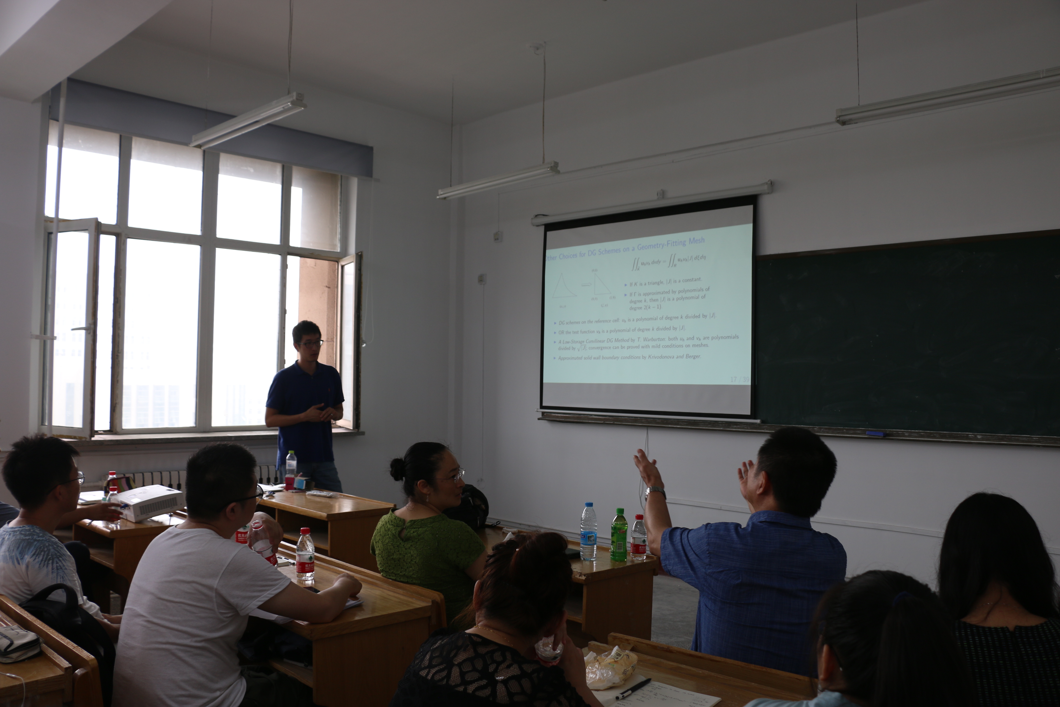 受国际合作处资助,应数学系吴勃英教授和数学系与数学研究院孟雄副教授邀请,美国普渡大学张翔雄博士近日访问了我校,并于2017年7月17日上午11:00-12:00在格物楼522会议室作了题为“A Simple Curved Boundary Treatment for Explicit High Order DG Methods Solving Time-Dependent Problems”的学术报告,报告由孟雄副教授主持,数学系30余位师生听取了报告并进行了热烈的讨论。报告主要介绍了处理带有复杂边界条件发展型方程高阶间断有限元方法的设计与实现。