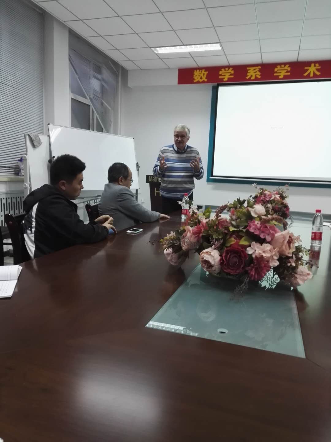 应数学系付永强教授的邀请,俄罗斯科公司西伯利亚分院Sobolev数学研究所应用分析研究室主任、通讯院士和新西伯利亚州立大学教授Andrey Vesnin于10月3日至6日来我校访问并讲学,于10月5日下午15:00在格物楼503会议室做了题目为On complexity of 3-manifolds的精彩报告。 报告由付永强教授主持,相关专业的二十位师生参加了讲座和讨论。Andrey Vesnin教授的报告系统、全面、细致、深入,师生们从中不仅可以了解到相关领域的前沿工作,更对自己接下来的工作学习方向有了更为清晰的认识,收获颇丰。