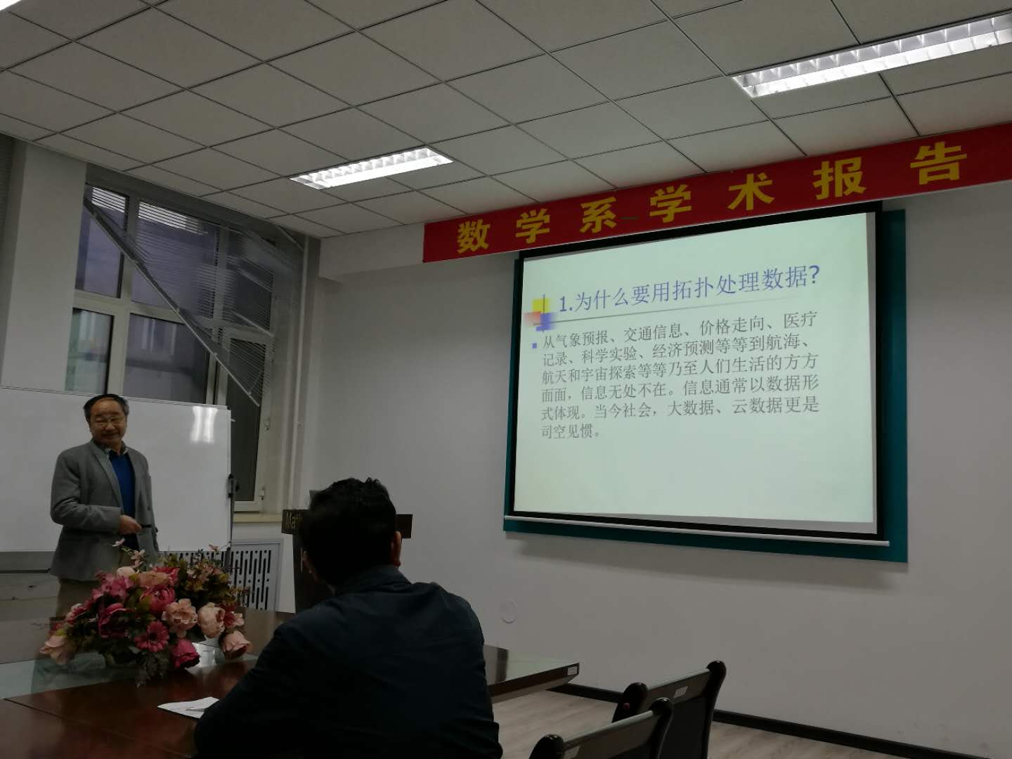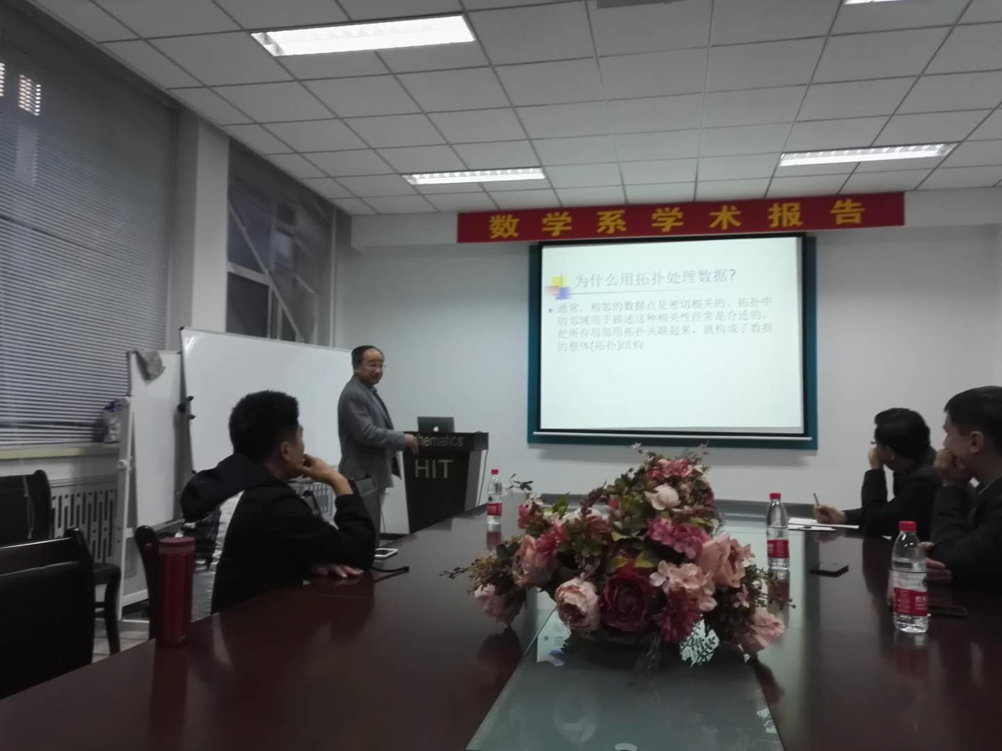 报告由付永强教授主持,相关专业的二十位师生参加了讲座和讨论。雷逢春教授的报告系统全面、细致浅出,师生们从中不仅可以了解到拓扑数据分析的前沿工作,收获颇丰。