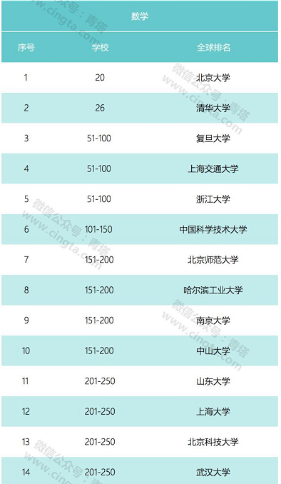 我校数学学科2015-2018排名 数据来源:https://www.topuniversities.com/university-rankings/university-subject-rankings/2018/mathematics |