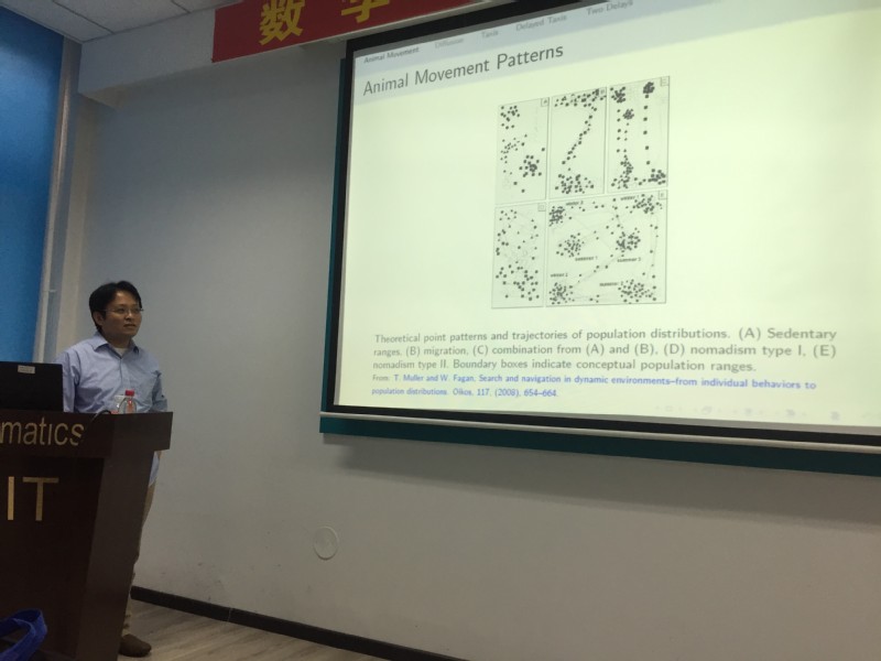 2018年5月20-22日,美国威廉玛丽公司史峻平教授来我校进行学术访问,并与5月21日在格物楼503做了题为《Modeling animal movement with memory with partial differential equations with time-delay》学术报告。报告由王春程副教授主持,数学系10余名相关方向的师生听取了报告并进行了热烈的讨论。