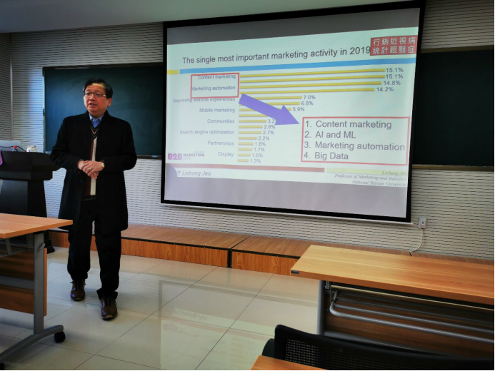 应bwin必赢田波平教授邀请,2019年10月17日上午,台湾大学任立中教授到访我校并作学术报告。任立中教授在明德楼201会议室为大家带来题为“The evolution and application of big data marketing—from marketing myopia to statistics cataract”的精彩学术报告。公司部分员工和研究生参与了此次报告会。