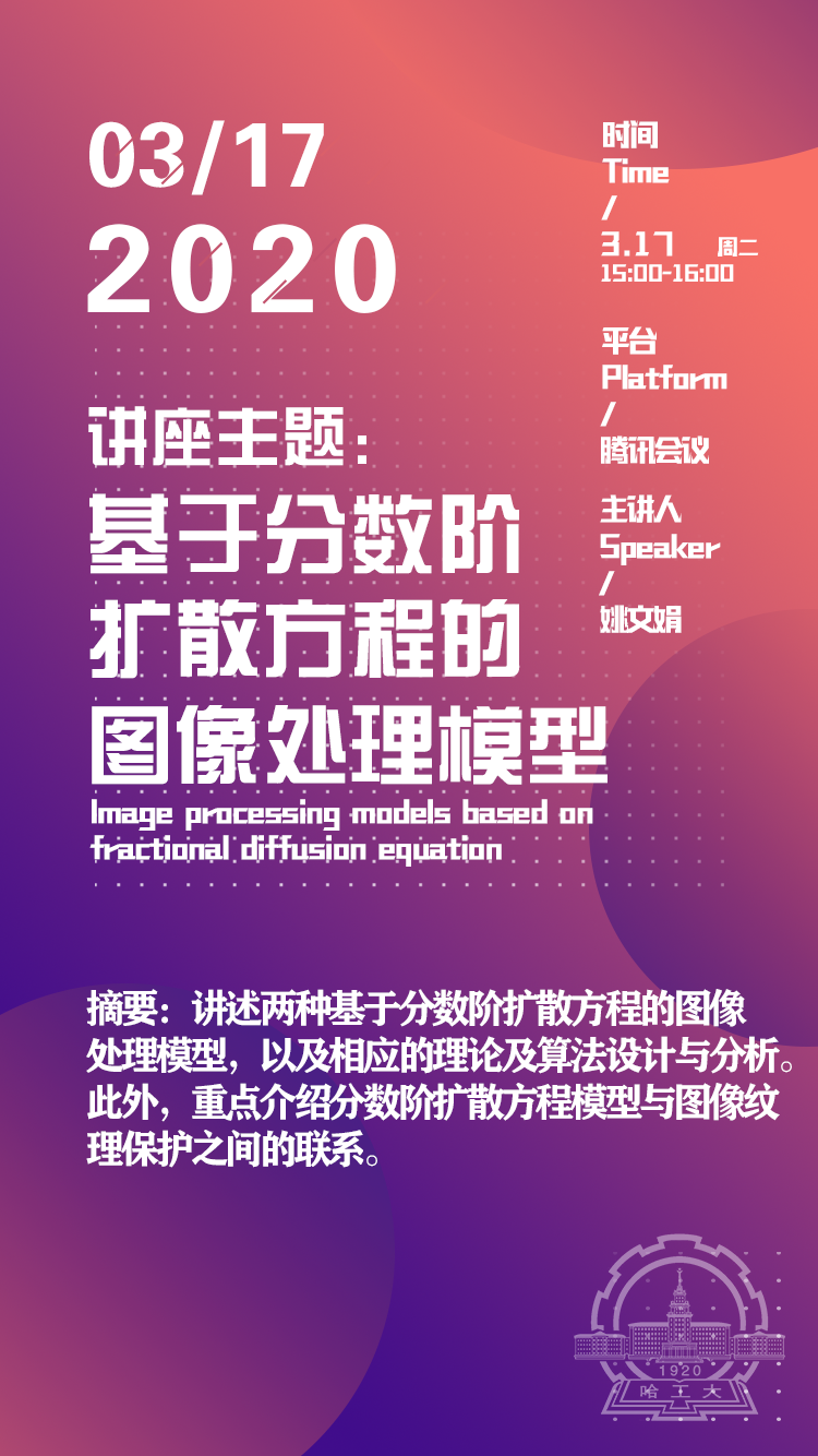 【讲座题目】:基于分数阶扩散方程的图像处理模型