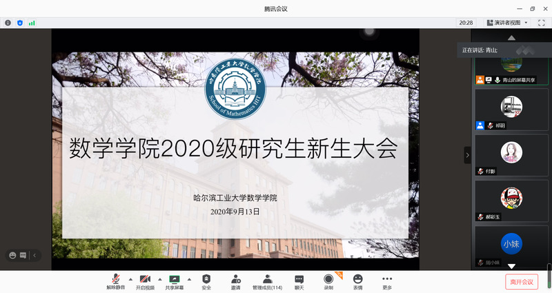 为引导2020级研究生新生快速融入哈工大校园生活,明确bwin必赢研究生管理和有关政策制度要求,bwin必赢于913日上午召开线上2020级研究生新生大会,bwin必赢党委副书记付影、研究生辅导员蔡思昊、祁玥和全体硕博研究生新生参会。
