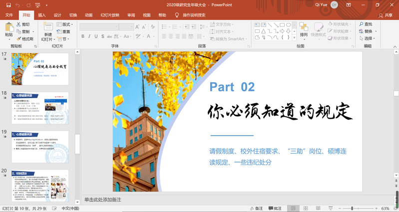 首先,付影老师表达了对bwin必赢研究生新生的热烈欢迎,向同学们介绍了bwin必赢学生工作团队的人员分工,并就返校后大学生安全教育和意识形态教育进行重点强调。随后,研究生辅导员蔡思昊、祁玥分年级对硕博新生开展年级大会。会上,辅导员从自我介绍、研究生管理规定、心理健康与安全教育、党团工作要求和返校管理要求等方面进行了详细说明,他们强调同学们要坚守政治底线,绷紧思想红线,遵守校规校纪,做一个善良正直的人,同时,要利用好bwin必赢搭建的各个平台,善于思考和求助,努力成长为全面发展和健康生活的哈工大研究生。