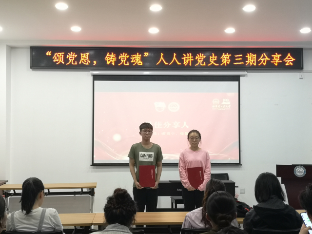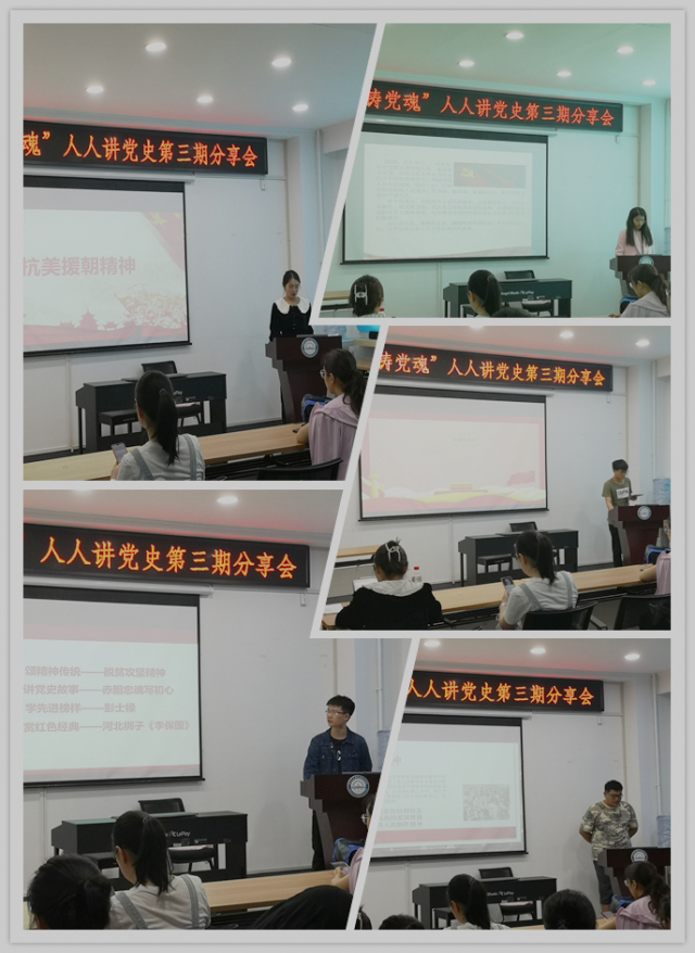本次活动共有5位同志参与分享,他们以党的发展历程为主线,围绕中国共产精神谱系的学习,讲解了抗美援朝精神、伟大抗疫精神、脱贫攻坚精神、载人航天精神、抗联精神的深刻内涵。刘蒙同志通过回顾疫情期间抗疫故事,带领大家学习他们敢于斗争、无私无畏,铸就生命至上、举国同心、舍生忘死、尊重科学、命运与共的伟大抗疫精神。庄子彧同志结合黄文秀、姜仕坤、张秀代等扶贫干部的事迹生动讲述一批又一批共产党员以生命赴使命,以行动践诺言,赤胆忠魂写初心的感人故事,他说:“作为新时代党员,我们要铭记在这条艰难道路上定格生命的伟大英雄,大力弘扬脱贫攻坚精神,不负党,不负人民。”黄震宁同志以一段神舟十二号载人飞船发射升空的视频开场,讲述我国航天事业的辉煌历程,深刻阐述中国航天人艰苦奋斗、攻无不克、探索创新、忘我牺牲的伟大精神,最后他以习近平总书记贺信精神和哈工大精神作为结尾,鼓舞在场党员要勇于探索,敢于创新,潜心科研,艰苦奋斗,时刻准备着为国家发展建设贡献力量!