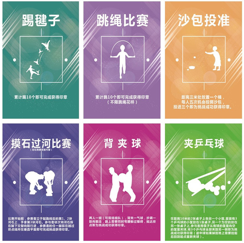 本次活动含“踢毽子”“跳绳”“摸石过河”“沙包投准”“背夹球”“夹乒乓球”六项运动,每通过一项活动即可获得一枚印章,最终根据印章数量兑换相应奖品。本次活动吸引到近百人参与,除大学生以外,还有老师、宿管阿姨和幼儿园小朋友的身影。活动第一天,就有许多博士生和老师们前来询问活动的参与方式,在了解好规则后都选择进行挑战。这让本次嘉年华活动从一开始就热闹非凡,并不断吸引着更多路过的同学们,同学们叫来课题组的同门前来参与活动,老师也带着自己的孩子来进行亲子小游戏,整场活动其乐融融。