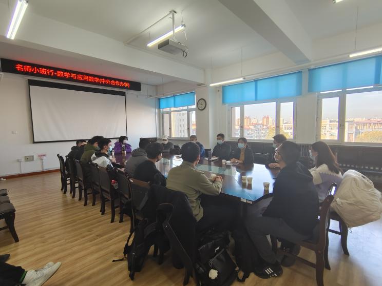增强大一新生对数学学科的认同感、归属感增强老师与学生之间的纽带联系切实解决大一新生学习生活中的问题,20221019日,bwin必赢举办数学与应用数学(中外合作办学)名师小班行20期,党委书记张凤淼、副院长孙杰宝、党委副书记付影、辅导员侯昊燃参与活动。