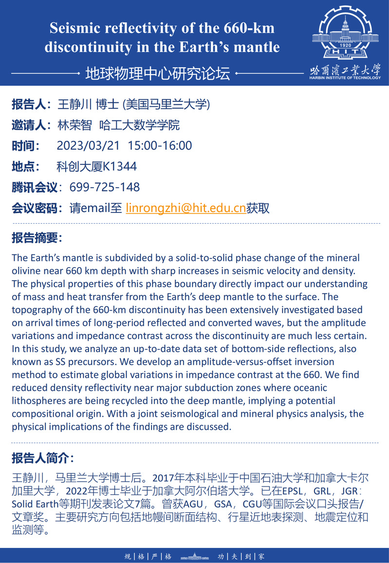 美国马里兰大学王静川博士关于地幔地震属性研究的学术报告