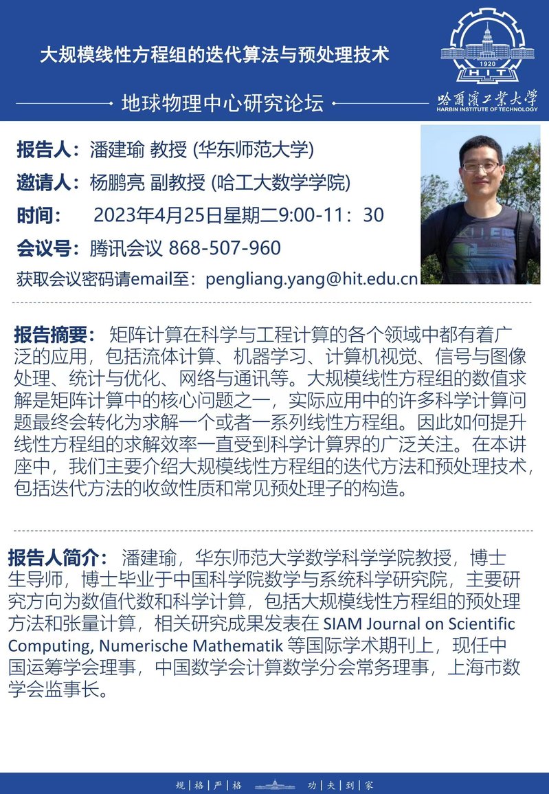 华东师范大学潘建瑜教授关于迭代法和预条件技术的讲座