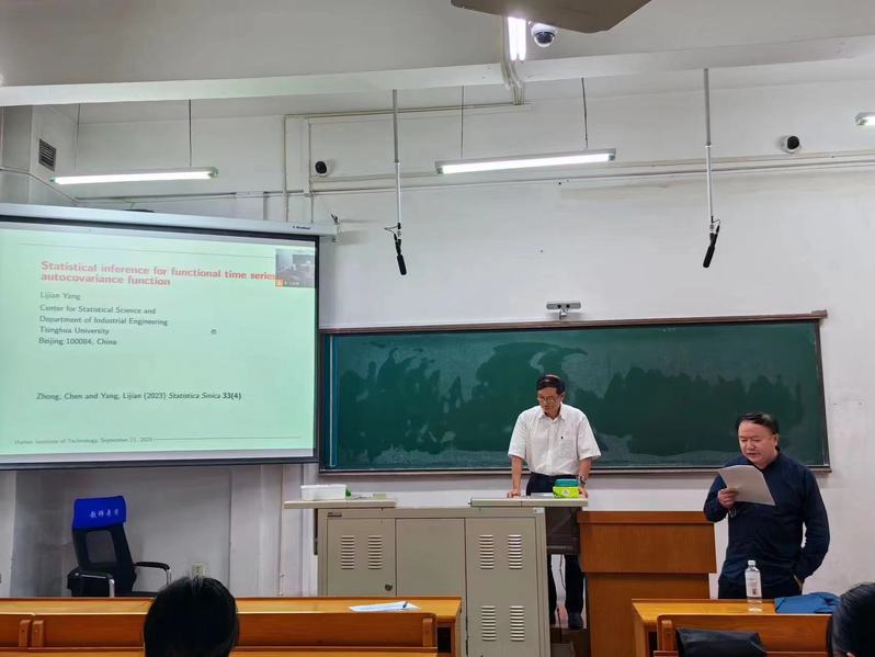 受讲席教授杨立坚教授和概率统计与运筹控制系主任田波平教授的共同邀请,本次报告由国际统计学会(ISI)主席Fabrizio Ruggeri教授与清华大学统计学研究中心杨立坚教授依次进行。我院国家高层次人才马坚伟教授致欢迎词,表达了对两位世界著名学者千里而来的欢迎和感谢。同时还有来自黑龙江大学、东北林业大学、东北农业大学、哈尔滨师范大学、哈尔滨商业大学等其它高校师生共同聆听了报告。