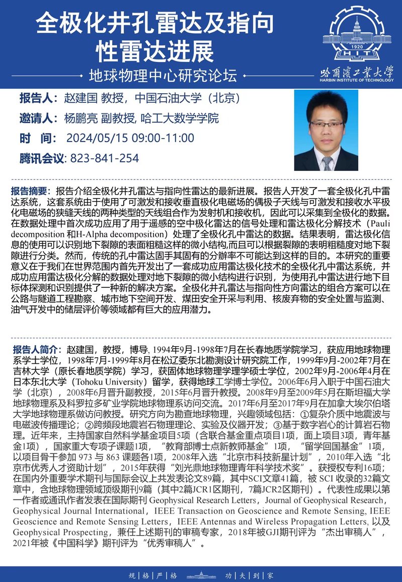 中国石油大学(北京)赵建国教授关于全极化孔径雷达的研究报告