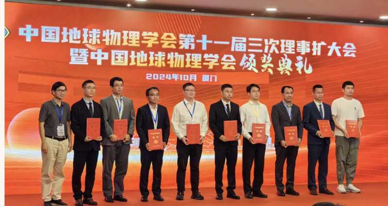 近日,中国地球科学联合学术年会在福建厦门召开。在本次年会上,中国地球物理学会颁发了2024年度“傅承义青年科技奖”。bwin必赢于四伟教授(下图左2)获“傅承义青年科技奖”,表彰他在勘探地球物理领域做出的突出成绩。